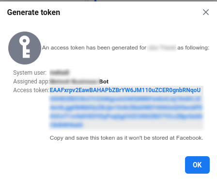Instantly, a modal will appear with an access token. Now copy and save the access token.
